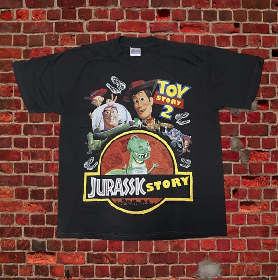 ジュラシックパークとトイストーリーのコラボTシャツ。